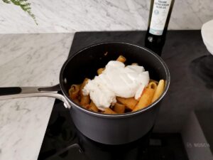 What to expect: a creamy and spicy pasta dish that’s quick and full of flavour. Bite into the aldente rigatoni covered in a creamy burrata sauce that is flavoured with Cannonata and enriched with tuna for the added protein and taste.