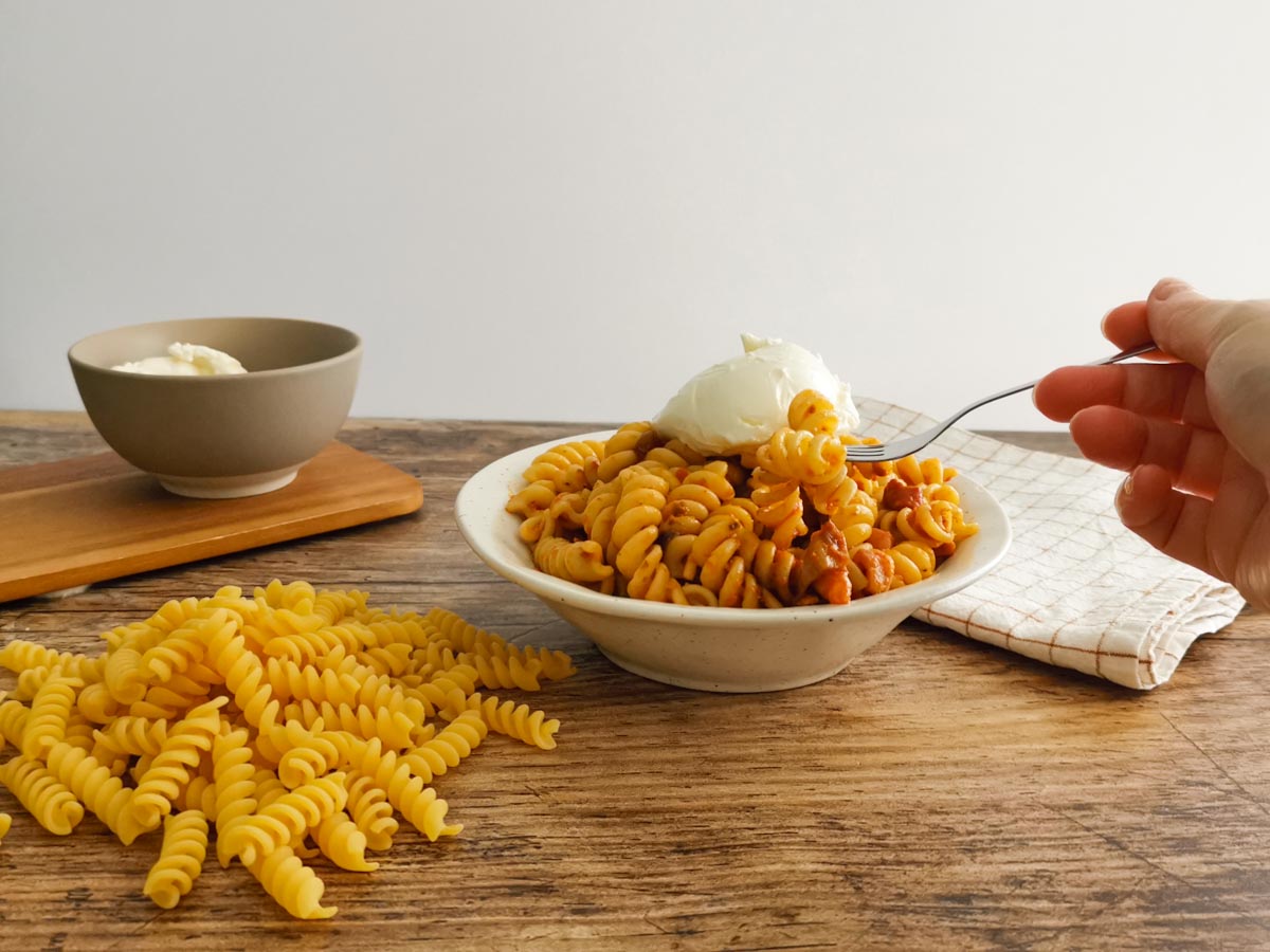 Red pesto: rigatoni, fusilloni, penne, or even spaghetti
