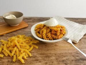 Red pesto: rigatoni, fusilloni, penne, or even spaghetti