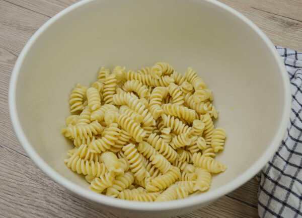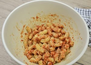 Drain it and dress it with the tomato sauce of your choice. Mix well.