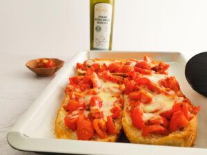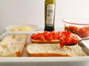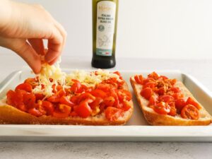 Bruschetta can be a quick meal to whip up when you are craving pizza, and it’s perfect enjoyed on a movie night.