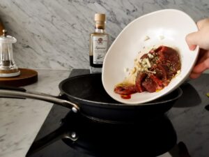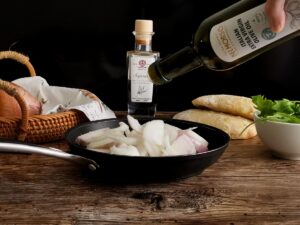 2. Add them to a pan & sauté with a generous drizzle of Belmorso EVOO.
