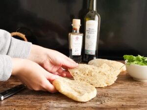 Absolutely, you can use store-bought ciabatta bread if you’re short on time or prefer the convenience. To elevate store-bought bread, toast it lightly to enhance its texture and flavor. A drizzle of EVOO on the inner sides can also add a touch of richness and moisture.