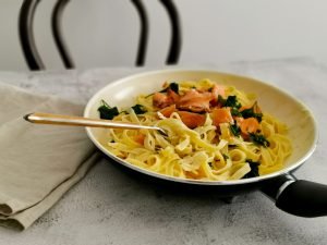 Creamy Salmon Pasta (lactose-free) Creamy Salmon Pasta is back. If you have been following us for a long time, you’ve probably made our popular Penne al Salmone pasta, which we shared on our old blog.