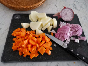 Today, we are making a classic – Italian vegetable soup with pasta. But we are adding chicken, since we also know you like that a lot.