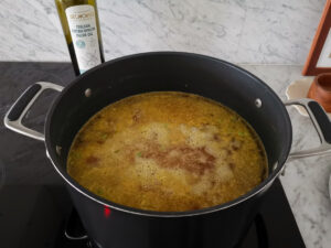 - Add the tubetti pasta, mix well and let it cook for 10 minutes without the lid. Mix from time to time. The broth is enough for 300 to 350 gr of pasta. It depends on how you like your pasta soup, with a lot of broth or without.