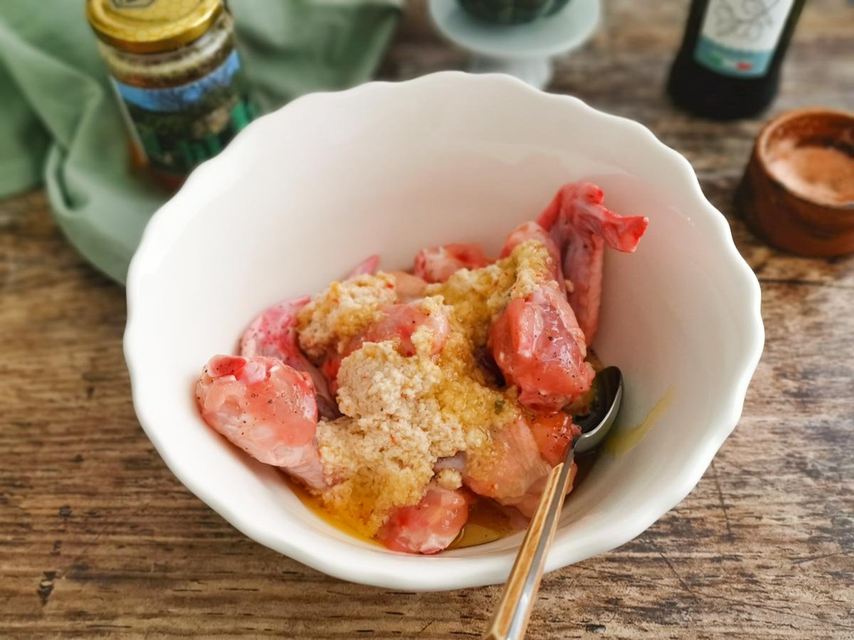 Today, we are going to take an International classic – Chicken Wings Honey and Garlic – and give it an Italian twist. To do that, we’ll be using our Artisan Fresh Italian Extra Virgin Olive Oil, and Belmorso Garlic Paté. If you do this again when you get Novello EVOO, make sure to use that to up the taste even more.