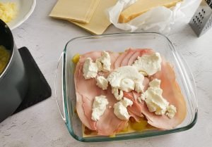 If you are tired of making the usual lasagne, or can’t get enough of this dish and want to make more and more variations, here’s one to try. It’s white, very savoury, full of vegetables, and great if you love ricotta, bacon and ham.