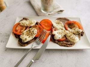 Beef skewers pair well with a variety of side dishes and accompaniments. Some popular options include grilled vegetables like bell peppers, onions, and mushrooms, a refreshing salad, rice or couscous, but you can also try caponata, or roasted potatoes.
