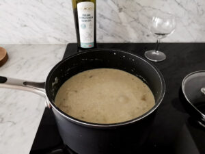 - Add the stock to your pot, cover with a lid, lower the heat, and leave to simmer for 40 minutes. You can reserve a little stock to mix in the one tablespoon of flour before adding it to the pot. Or you can do this before adding the cooking cream, if you want to see if it needs it.