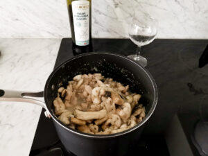 - Add the mushrooms and leave them to aromatize for 5 minutes.