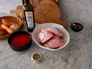Chicken cacciatore, also known as “pollo alla cacciatora” in Italian, is a hearty dish made with chicken, typically cut into pieces. The chicken is sautéed and then simmered with a flavorful mix of tomatoes, onions, bell peppers, garlic, and herbs such as basil and oregano. Some versions might also include wine, capers, or olives.