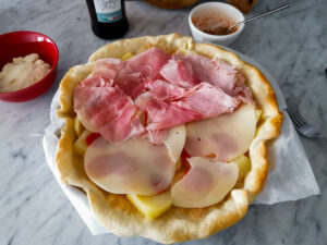 - Cover your Italian ham and cheese pie with the second roll of pie pastry.