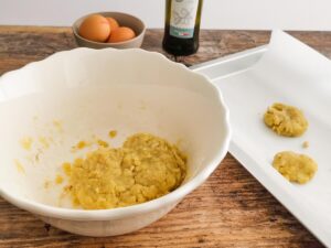 - Then, beat the egg and add that too. Mix again until a dough ball forms.