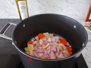 - Prepare your vegetables by washing them, peeling and cutting them into medium slices.