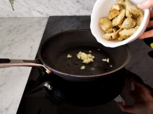 - Sauté the artichokes with the prepared garlic to further release the flavours.