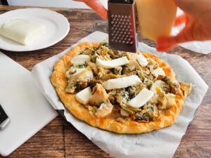 A puff pastry pizza with artichokes can be a great dinner idea when you want to combine pastry and vegetables and turn them into a delicious dish. This artichokes flaky pizza from Bari is also a great alternative to your weekend pizza, when you feel you need a change. Plus, it makes a great appetizer to serve at parties and dinners you might be hosting.