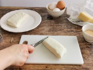 - Remove it from the parchment paper it comes with and put it on a clean sheet of parchment paper