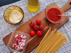 - Add the drained pasta to the pan with the sauce. Add some cooking water, as needed. Mix well and leave to cook for another 3 to 5 minutes with the sauce.