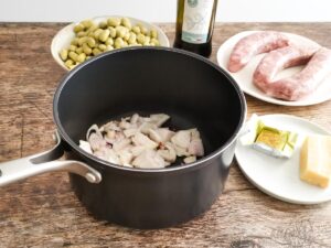- Sauté the onion in your pot with a generous drizzle of Belmorso EVOO or Novello.