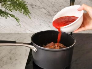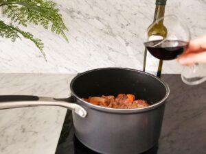 - Then, proceed by adding the wine and let it evaporate before you proceed to the next step.