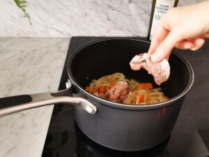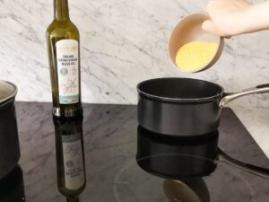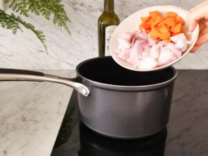 - Add those to your pot along with a generous drizzle of Belmorso EVOO, and let them sauté.