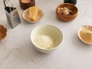 - Grate the parmesan and add that too. Mix everything well.Tip: I prefer using a block of parmesan as it tastes much nicer and it lasts for weeks in the fridge. On the other hand, packed parmesan tends to go off in just a few days.