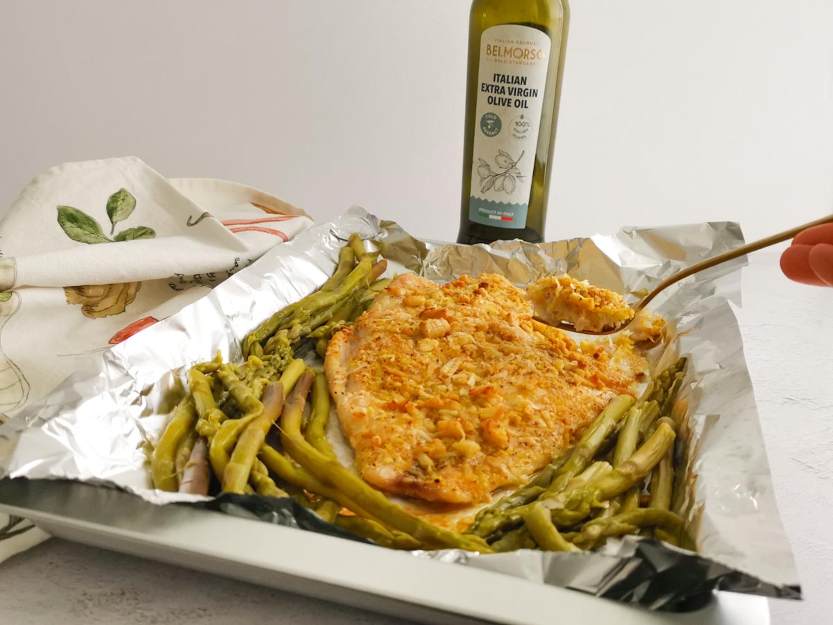 - Prepare your perch on a sheet of kitchen foil. Season with salt and pepper, and drizzle some Belmorso EVOO.