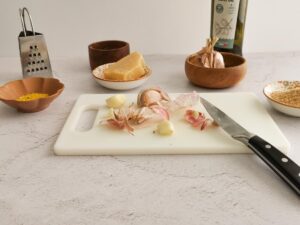 - Peel, wash and mince your garlic. Put into a small bowl.