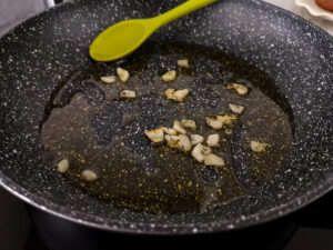 - In the meantime, mince 4 cloves garlic and sauté in 3 tablespoons EVOO. Add the mixed Italian herbs and sauté for 5 minutes. Then, switch the heat off and leave the EVOO to infuse with the flavours. You can cook it for longer, just cover it with a lid as the oil will start splashing.