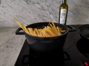 - Boil the water for the pasta with plenty of salt, and cook it following the packaging instructions.