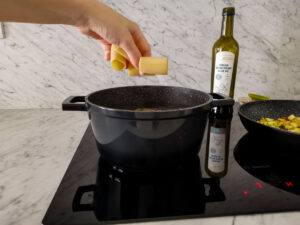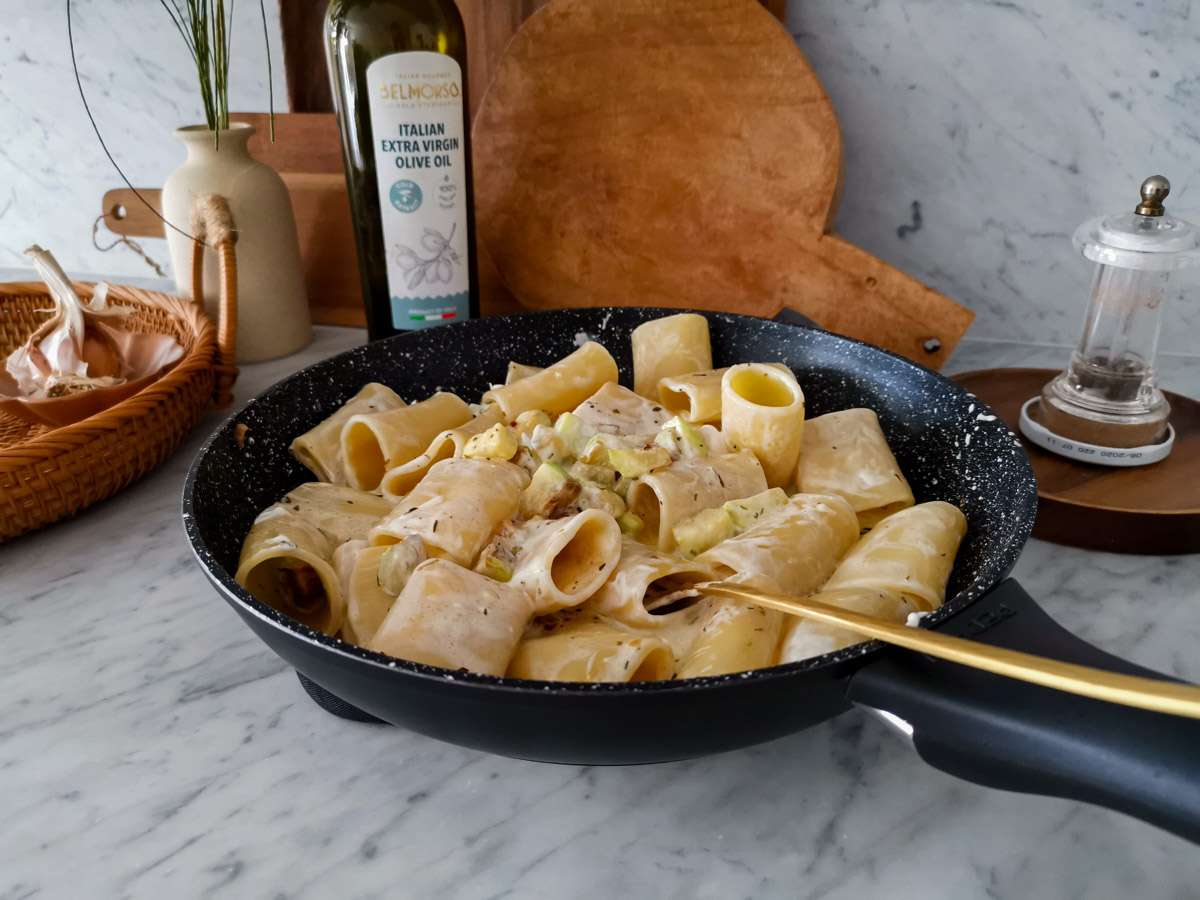 - In the meantime, boil the water for the paccheri, and salt it generously.