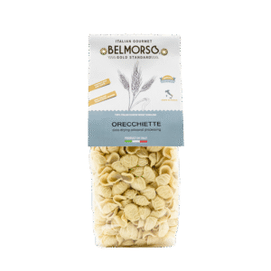 Belmorso Orecchiette are a distinctive Puglian type of pasta. They’re about 3/4 of an inch across, slightly domed and their centres are thinner than their