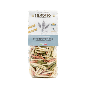 Belmorso Strozzapreti Tris is a typical pasta of the Emilia-Romagna region. The name means “strangled priest”, reflecting the anti-clericalism of the people of Romagna, when