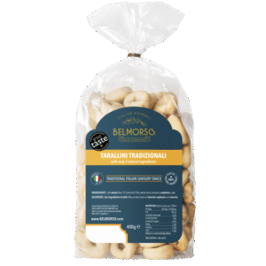 Belmorso Tarallini Tradizionali Bread Bites are a tasty snack full of flavour. A healthy alternative to bread or bread sticks Made with just 4 high