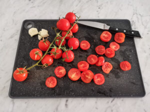 Here you go, a tasty Italian pasta with olive oil and tomatoes. Make sure to read it because there’s one ingredient that brings up the flavour.