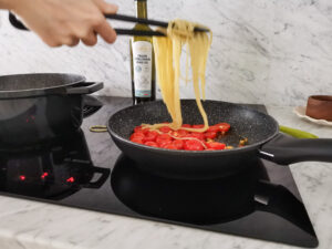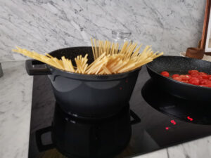 - Boil the water for the pasta and cook the spaghetti following the packaging instructions.