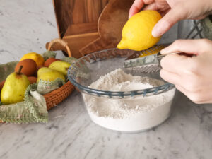 - Add the grated lemon peel. Mix again.