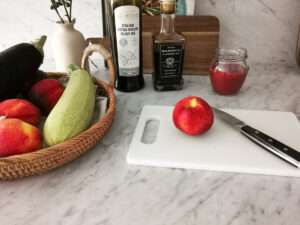 - Grill the vegetables & peaches on your grill pan. Once ready, set aside.
