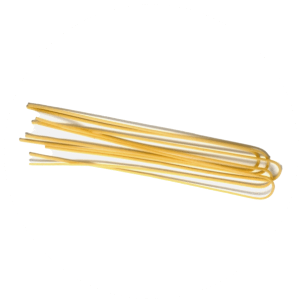 Spaghetti con Curva is long in shape with a curve in the middle forming a U. This shape originates from South Italy. This pasta cooks well and stays ‘al dente’ longer; whilst the rough texture allows for the sauce to stick to the pasta effectively.