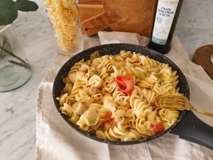 Fusilloni with Cream of Fontina, Artichokes & Speck
