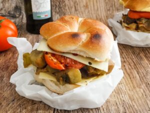 - Vegan roasted eggplant sandwich using a vegan cheese