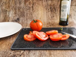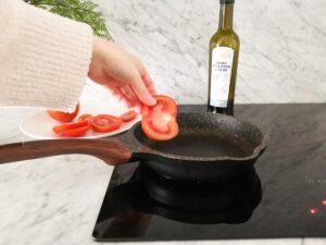 - Take a pan and grill your tomato slices for a few minutes. This way, they will be warm and a little crispy on the outside.