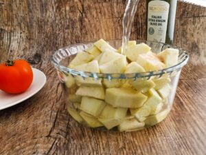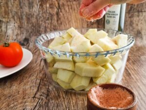 - Put the cut vegetable in a large bowl and sprinkle with plenty of salt.