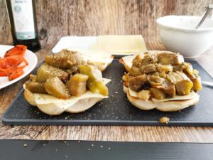 Aubergines that are cooked this way can be used for many fried aubergine recipes, including the panino we are making today but also parmigiana, pasta alla norma, and pizza with eggplant.