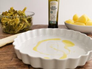 - Grease your dish with extra virgin olive oil.