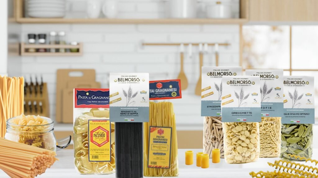 Paccheri pasta originated from Campania region in Italy. It’s a large, tube-shaped pasta, similar to giant rigatoni, traditionally used in Neapolitan cuisine.