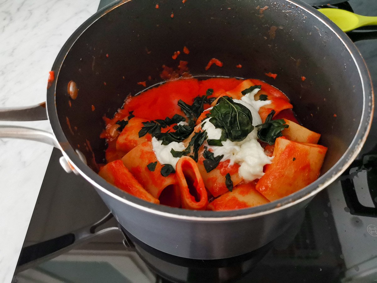 As you can see in the image above, we’re making Paccheri with tomato basil and mozzarella two ways. You can do the same or just choose one option.