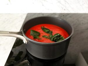 - Add all your ingredients into your pot, mix, and leave the sauce to simmer for 40 minutes on low heat. You can leave the garlic cloves hole and then remove them if you prefer.