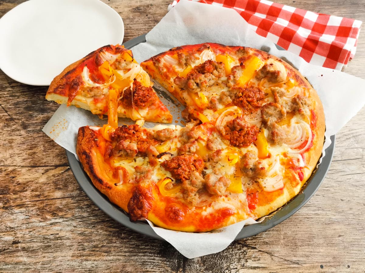 This spicy Apulian pizza with sausage will become your favourite thing once you try it. Let me tell you why.